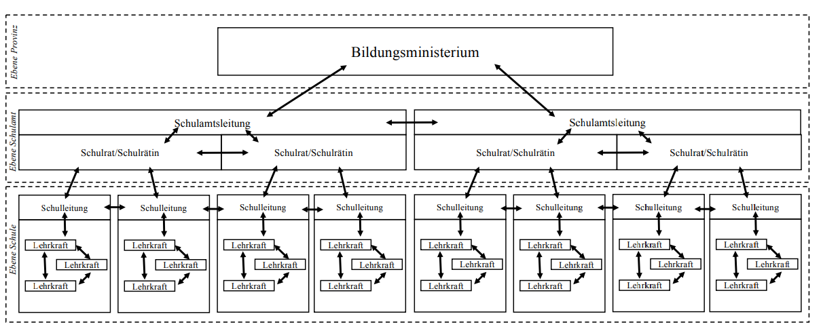 Zwischen den Schulen selbst besteht ein hoher Austausch- und Beratungsbedarf. Sechs bis zehn Schulen bilden in Alberta sogenannte „family schools“ und verstehen sich als professionelle Lerngemeinschaften, die meist einmal im Jahr zusammenkommen. Dabei legen sie basierend auf Daten konkrete Ziele und Maßnahmen fest. Grundlage für einen ergebnisoffenen Austausch bildet vor allem das Vertrauen in das gemeinsame, professionelle Arbeiten. Auch auf vertikaler Ebene findet ein solcher Austausch statt. Dieser stellt die Zielvereinbarungen zwischen Ministerium, Schulamt und Schulleitung sicher. Gleichzeitig sorgen diese festen Abläufe und Zusammentreffen dafür, dass alle Akteur:innen stetig im Austausch miteinander stehen, voneinander lernen und sich weiterentwickeln.