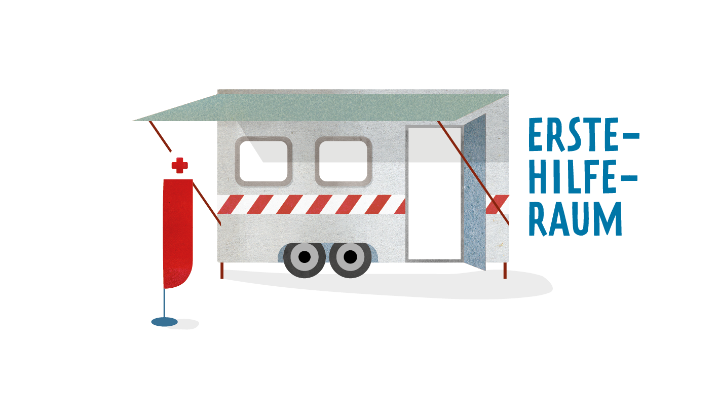 Im Erste-Hilfe-Raum finden Sie hilfreiche Tipps und Tricks zum Portal und den benutzten Tools sowie Ansprechpartner:innen bei technischen Schwierigkeiten.